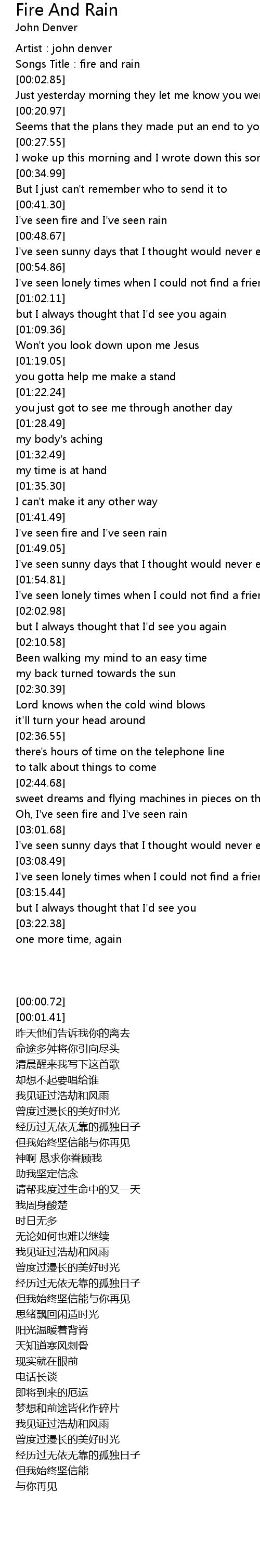 | [02:58.18] | Oh, I' ve seen fire and I' ve seen rain |