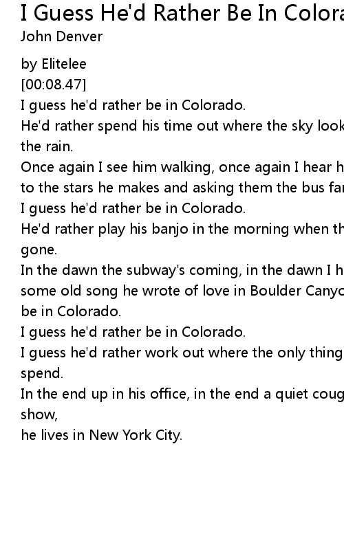 some old song he wrote of love in Boulder Canyon. I guess he'd rather be in Colorado. |