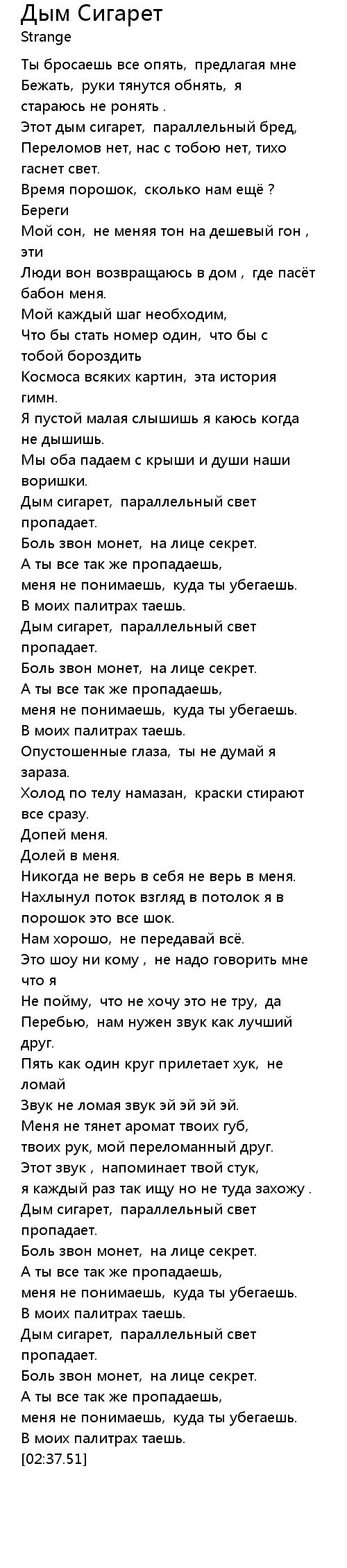 Дым Сигарет  Lyrics