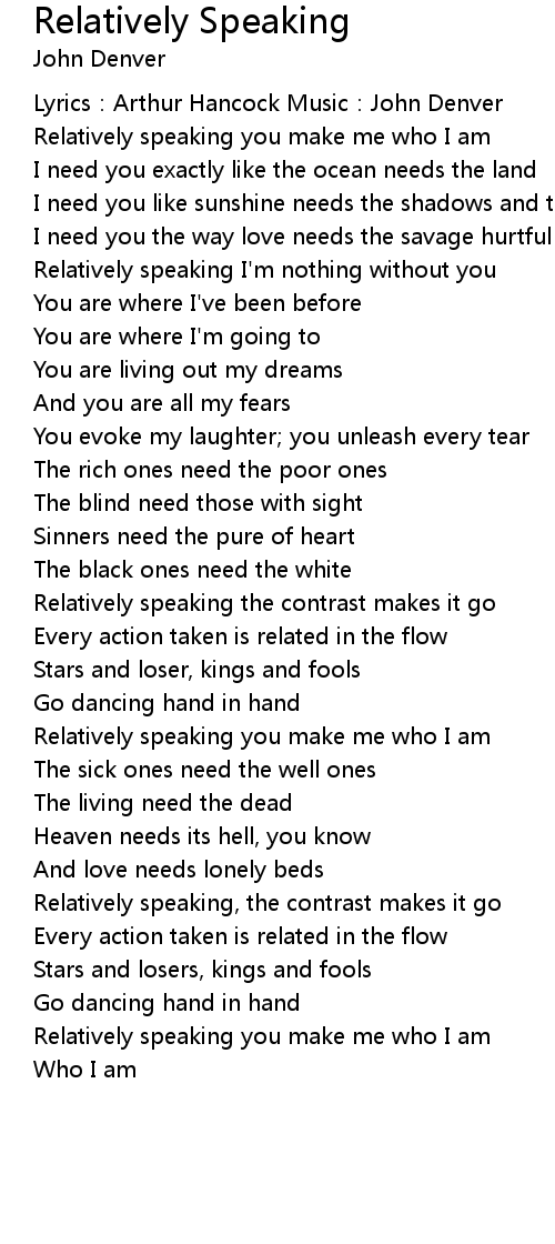 | Relatively speaking I'm nothing without you | |
