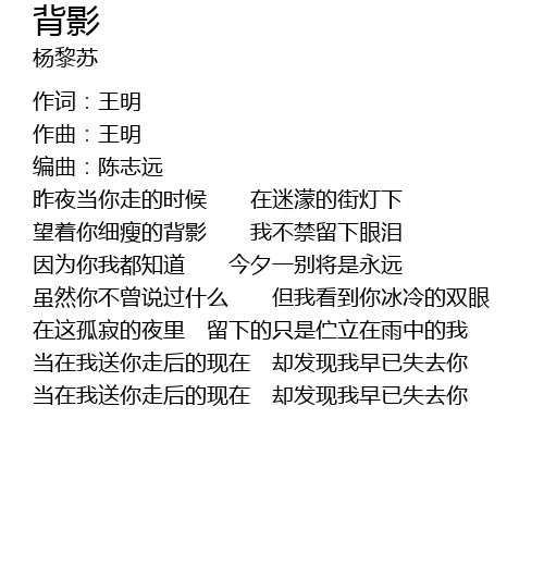 | 昨夜当你走的时候 在迷濛的街灯下 | |