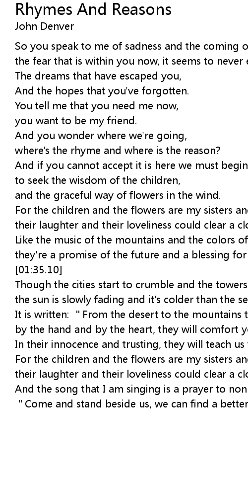 | Song | Rhymes And Reasons |