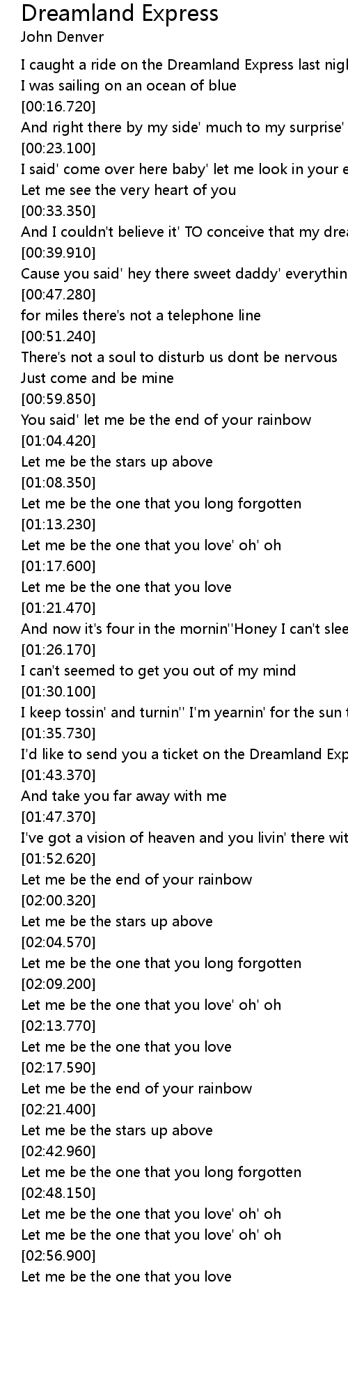 I'd like to send you a ticket on the Dreamland Express |
