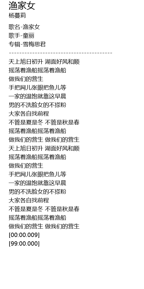 | [00:00.47] | 歌名-渔家女 |