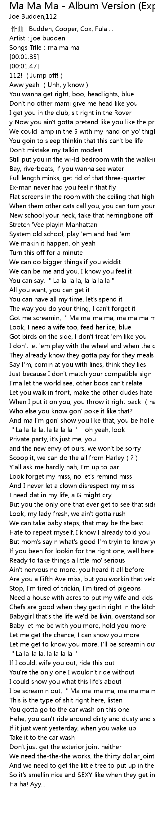 | Song | Ma Ma Ma - Album Version (Explicit) |