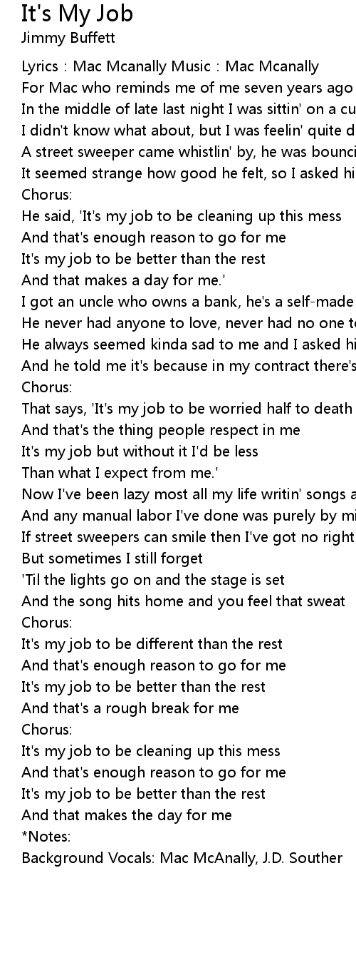 | Song | It's My Job |