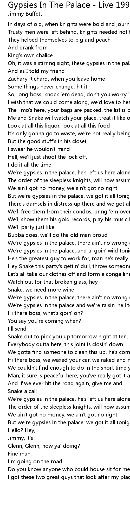 We're gypsies in the palace and we're raisin' hell tonight |