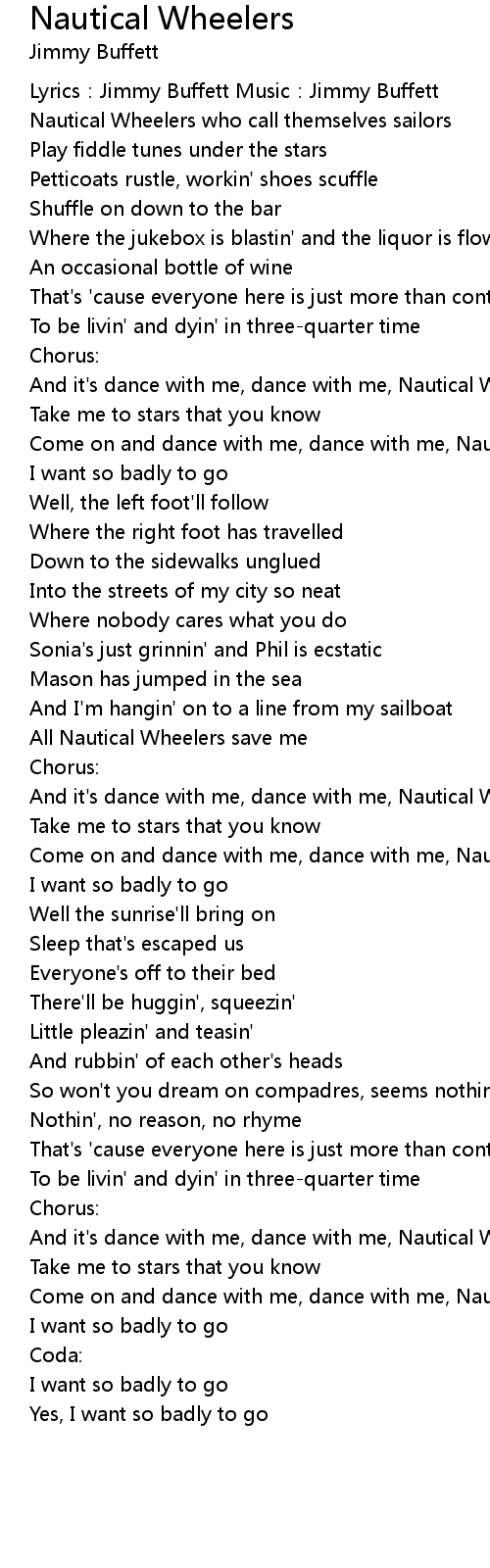 | And it' s dance with me, dance with me, Nautical Wheelers | |