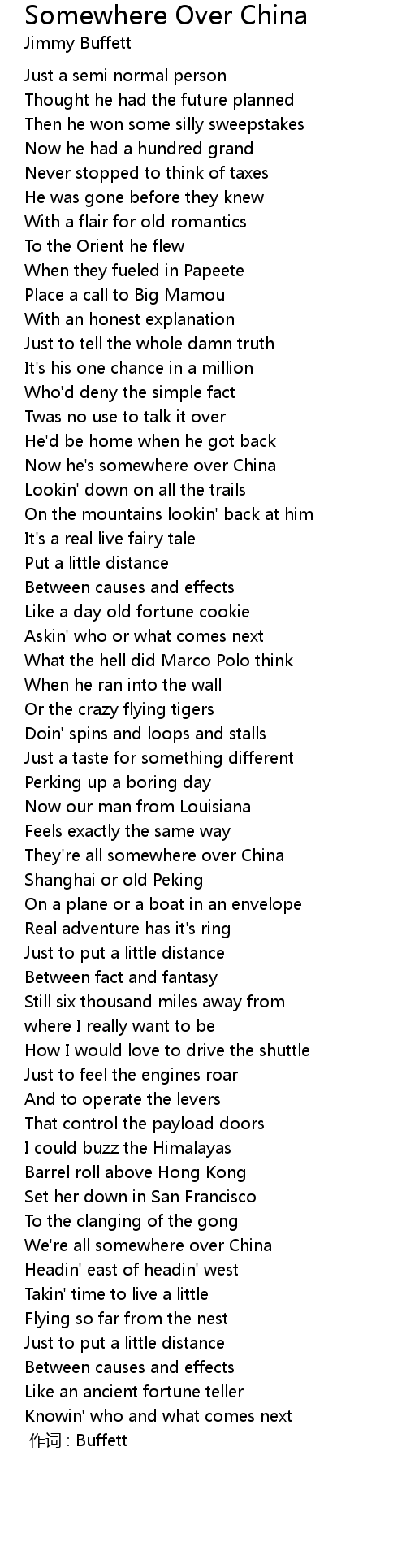 | Now he' s somewhere over China | |