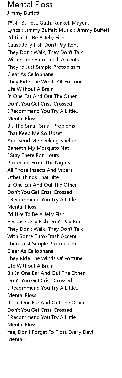 | 作词 : Buffett, Guth, Kunkel, Mayer ... | |
