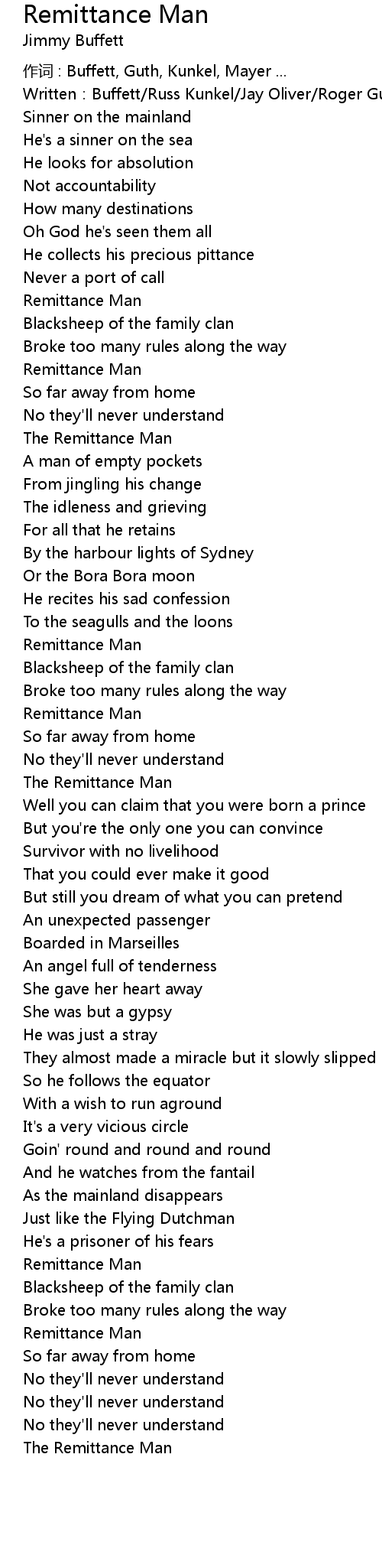 | 作词 : Buffett, Guth, Kunkel, Mayer ... | |