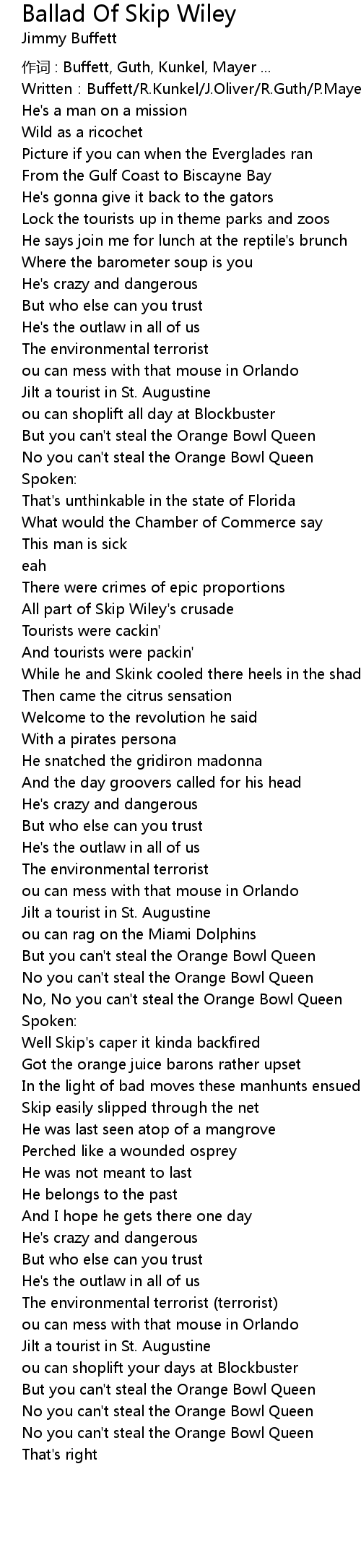 | 作词 : Buffett, Guth, Kunkel, Mayer ... | |
