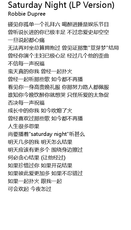| [02:08.52] | 尚要播着"saturday night"听甚么 |