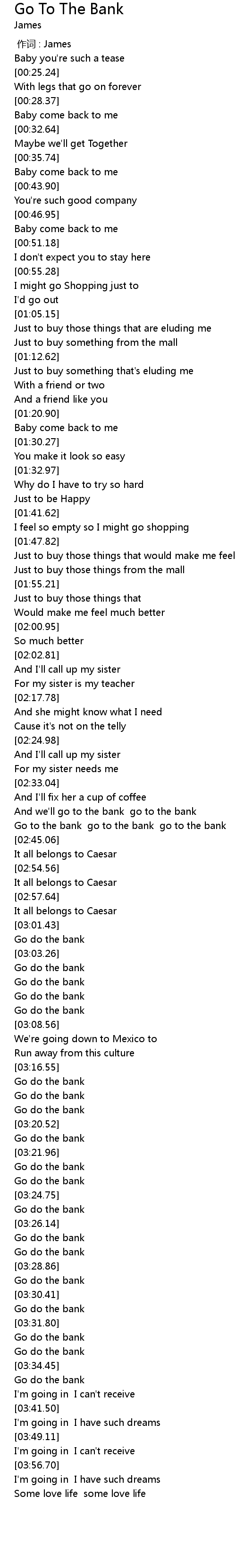 | [02:40.65] | Go to the bank go to the bank go to the bank |