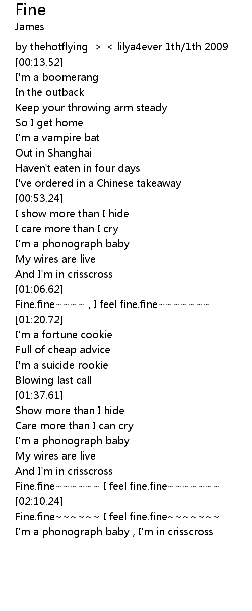Fine.fine~~~~ , I feel fine.fine~~~~~~~ |