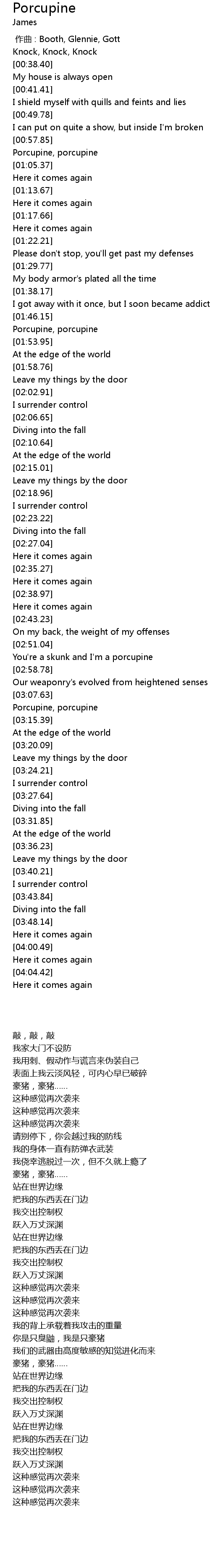 | [00:45.05] | I shield myself with quills and feints and lies |