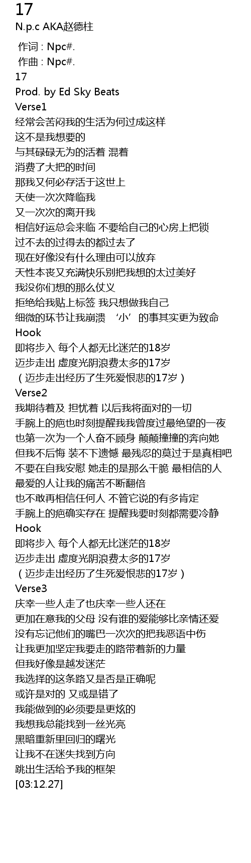 | [01:13.26] | (迈步走出经历了生死爱恨悲的17岁) |