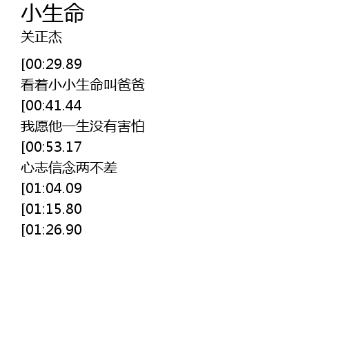 | [01:49.18][00:29.89] | 现时我感到幸运莫须说话 看着小小生命叫爸爸 |