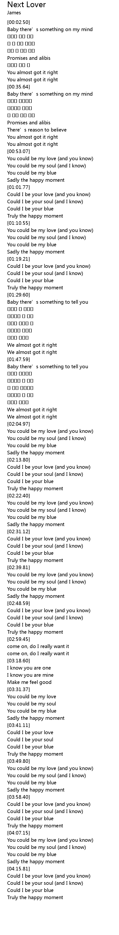 | [02:23.03] | You could be my love (and you know) |