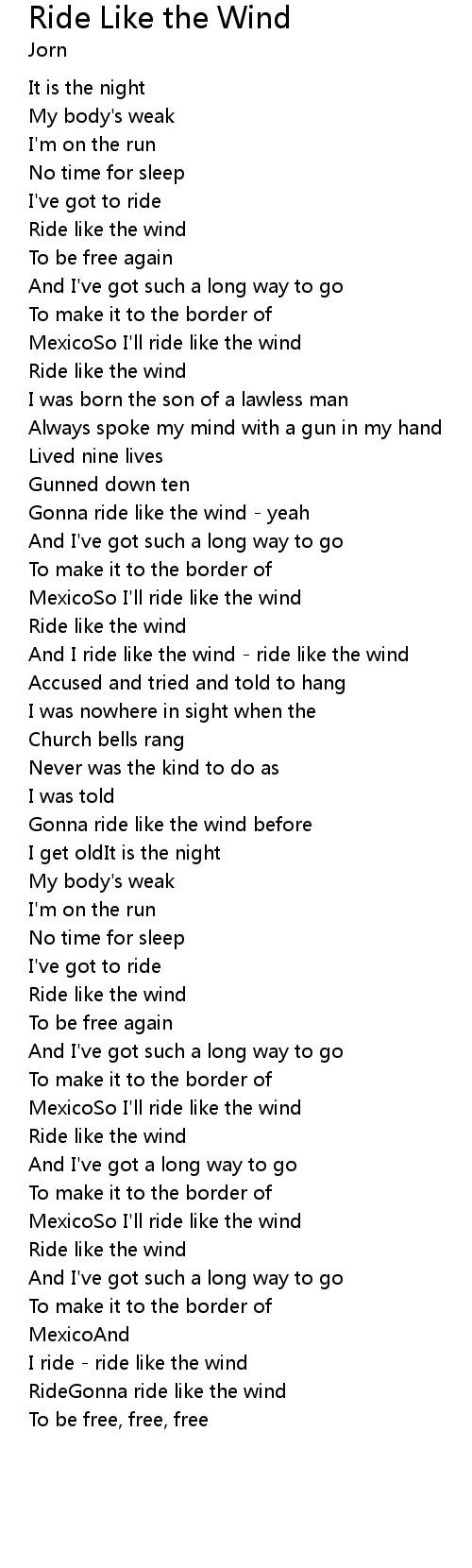 And I ride like the wind - ride like the wind |