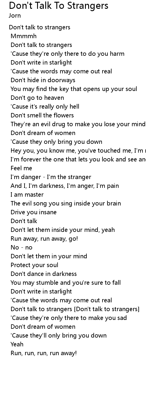 | Don't talk to strangers [Don't talk to strangers] | |