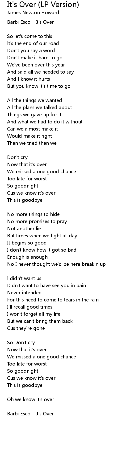 Oh we know it's over |