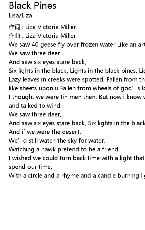 | Six lights in the black, Lights in the black pines, Lights in the black pines. | |