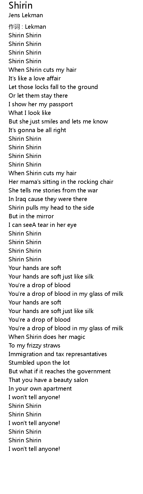 | Song | Shirin |