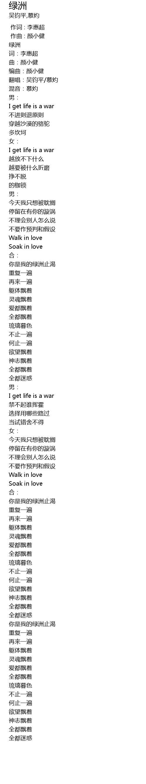 | [02:43.888] | nǐ shì wǒ de lǜ zhōu zhǐ kě |