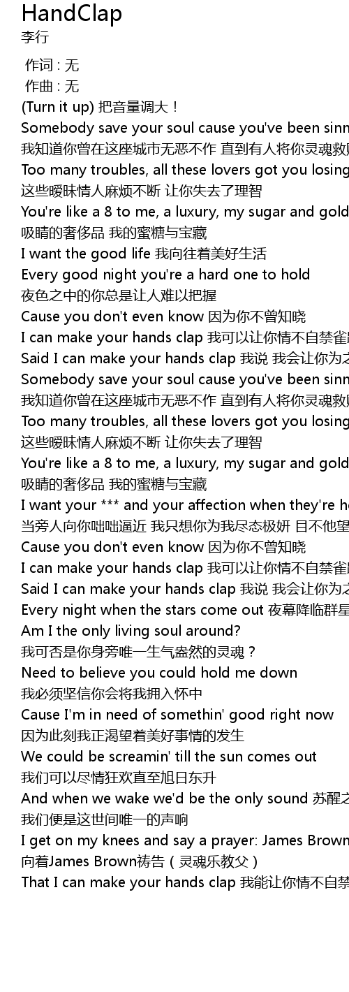 | [00:59.358] | Said I can make your hands clap 我说 我会让你为之卖力鼓掌 |