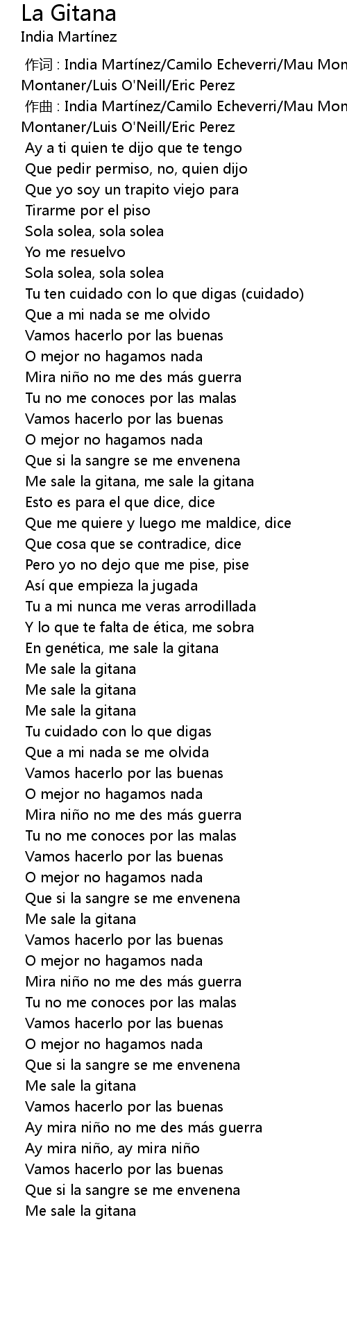 | [00:59.030] | Me sale la gitana, me sale la gitana |