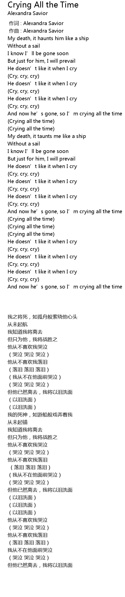 | [02:16.792] | And now he' s gone, so I' m crying all the time |