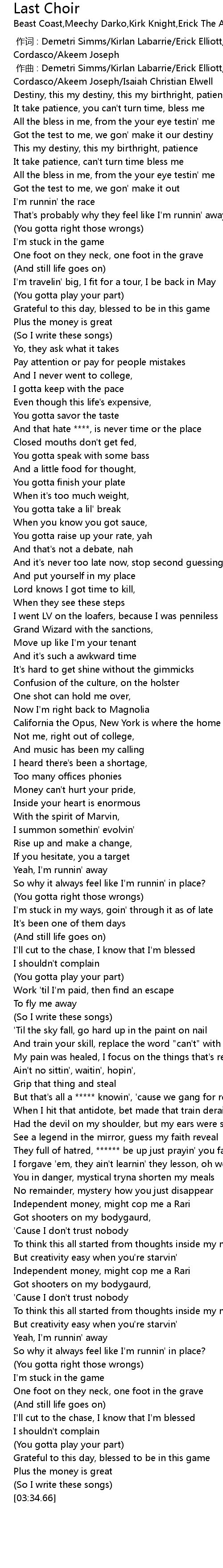 | [00:09.06] | Got the test to me, we gon' make it our destiny |