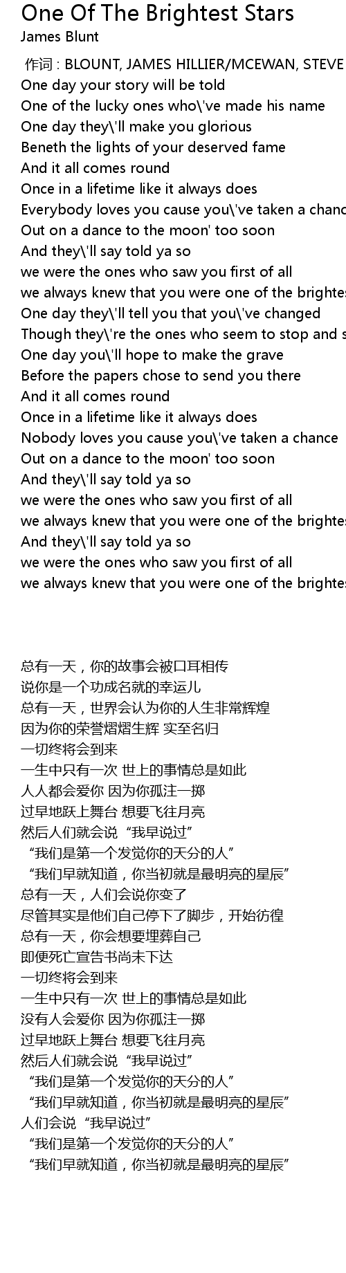| Song | One Of The Brightest Stars |