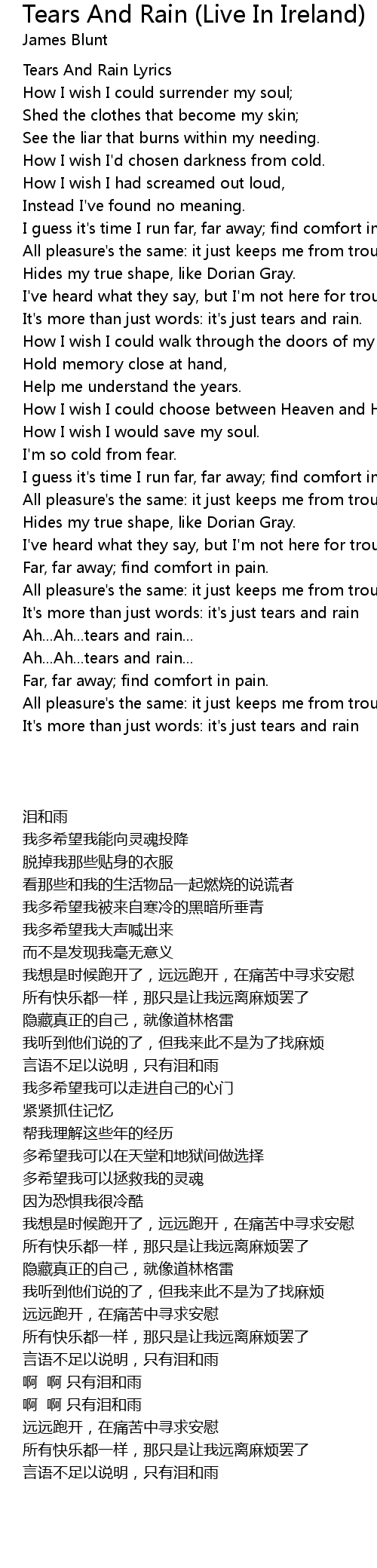 Tears And Rain Lyrics |