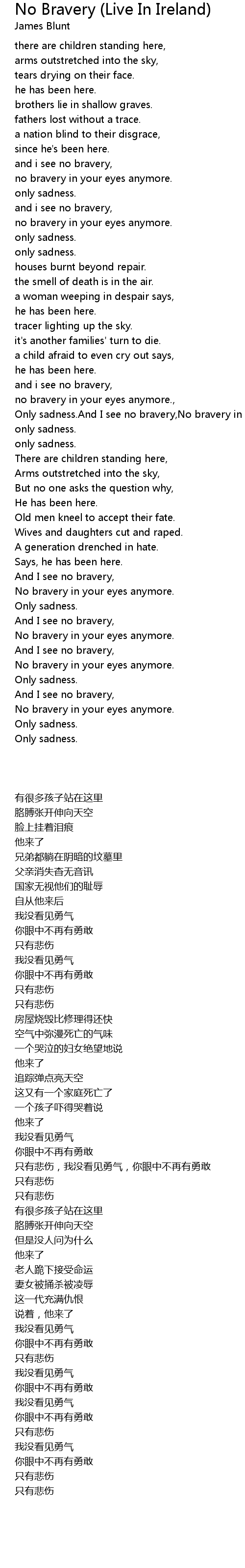Only sadness.And I see no bravery,No bravery in your eyes anymore. |