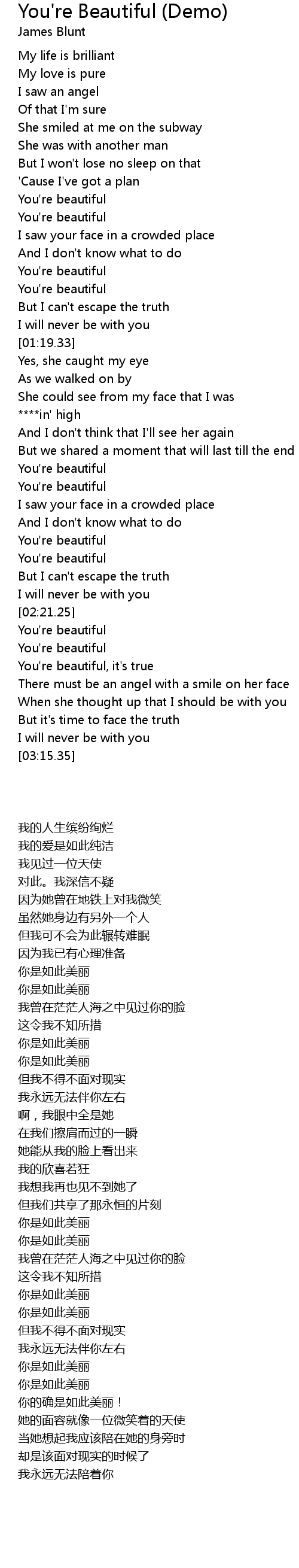 You're beautiful, it's true |