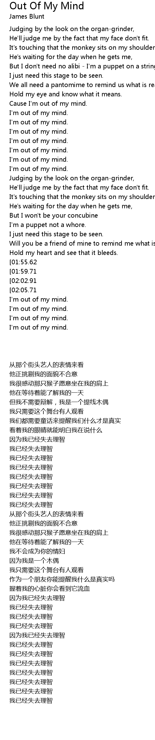 Cause I'm out of my mind. |