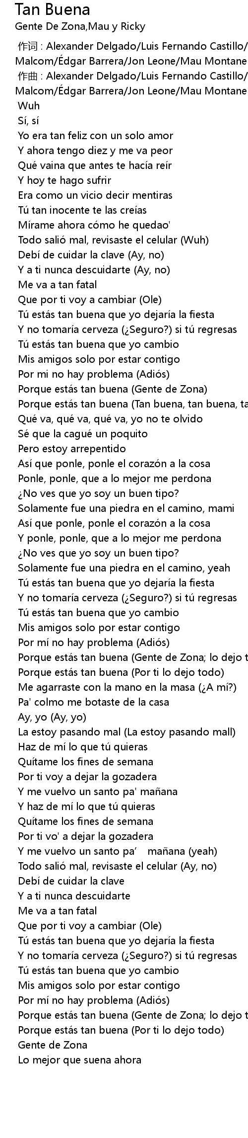 | [01:08.696] | Porque estás tan buena (Tan buena, tan buena, tan buena) |