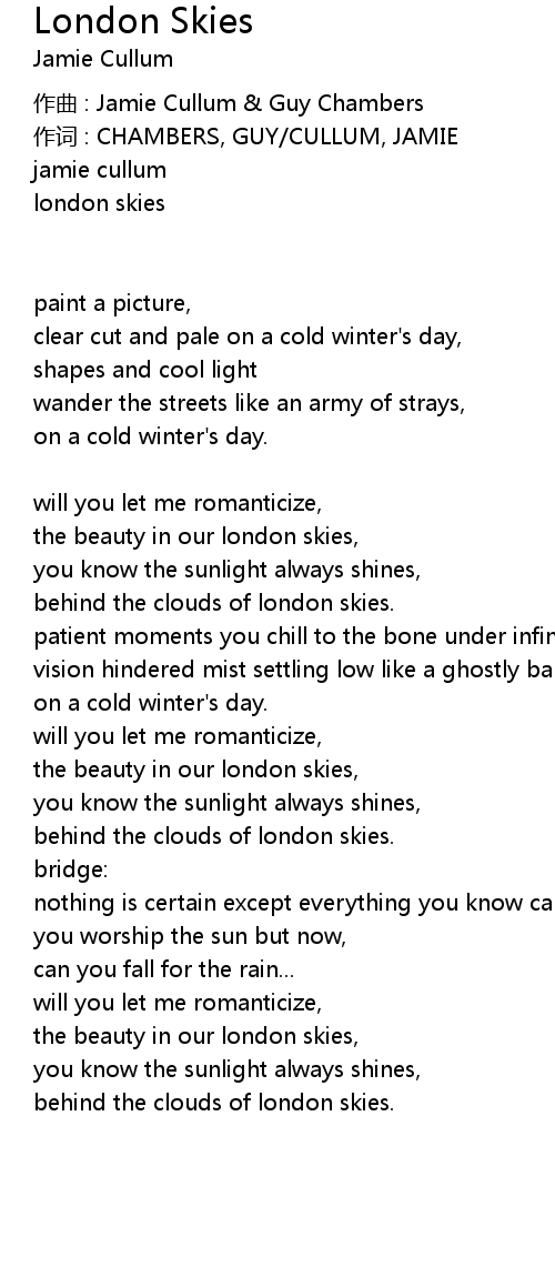 | behind the clouds of london skies. |