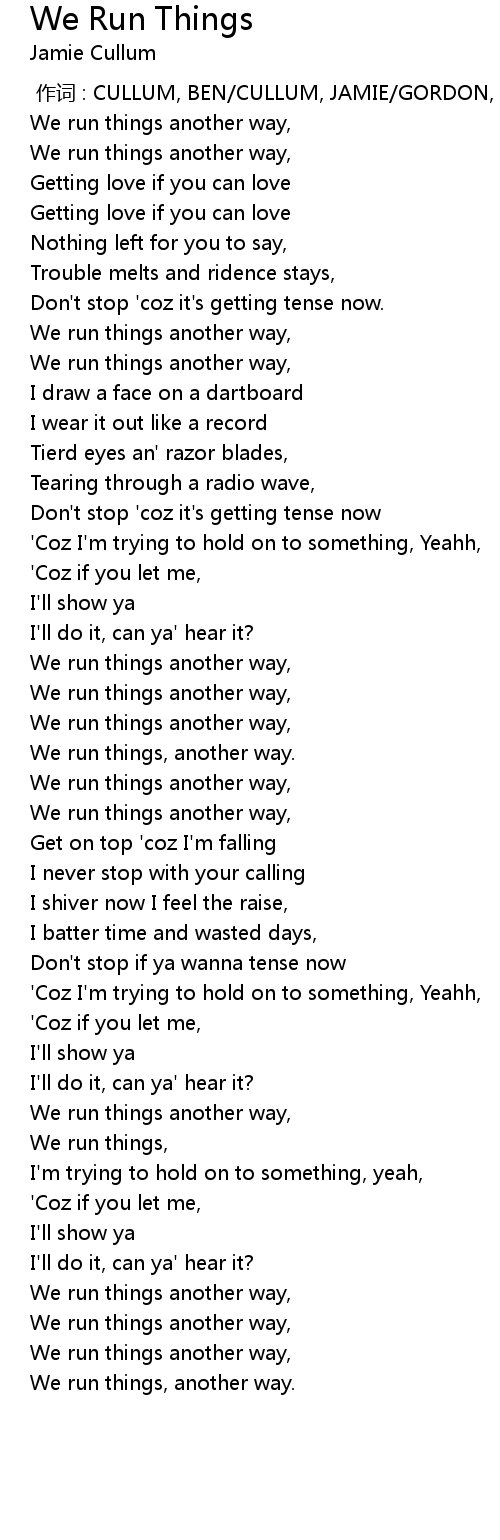 | [00:00.00] | 作词 : CULLUM, BEN/CULLUM, JAMIE/GORDON, KARL |