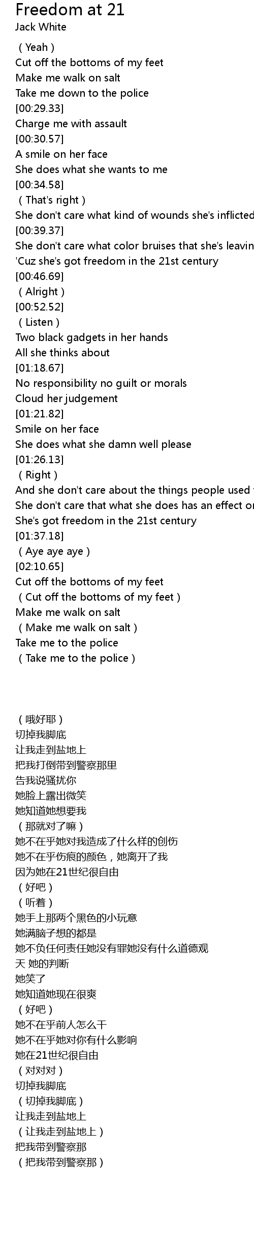 | [00:43.26] | 'Cuz she's got freedom in the 21st century |