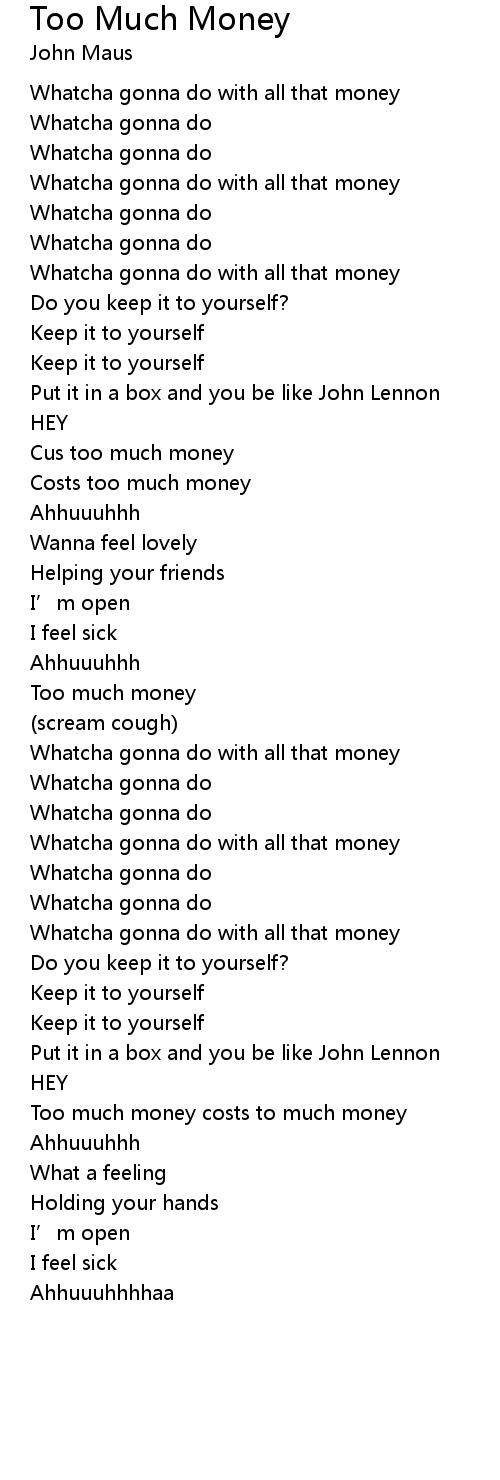 | Song | Too Much Money |
