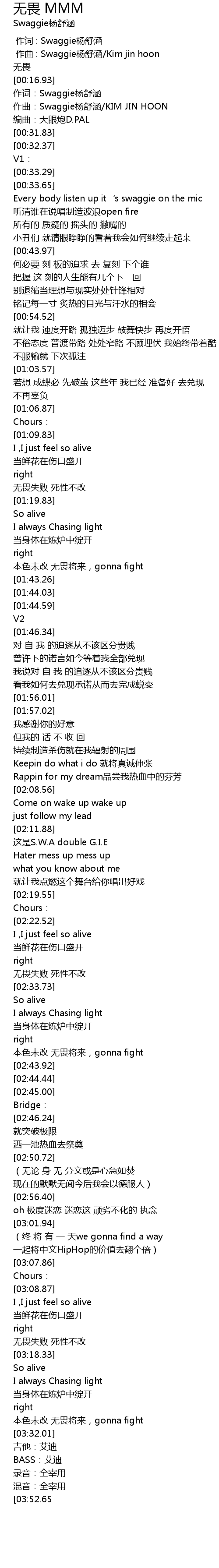 | [00:00.000] | 作词 : Swaggie杨舒涵 |