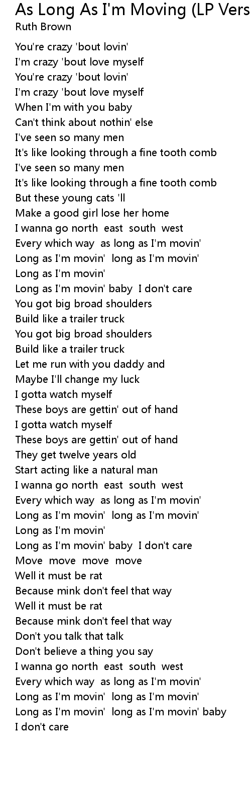 Long as I'm movin' long as I'm movin' |