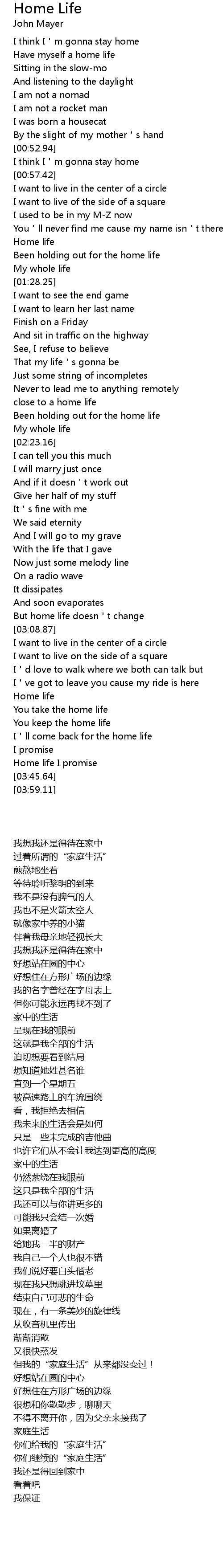 | [00:23.00] | Have myself a home life |