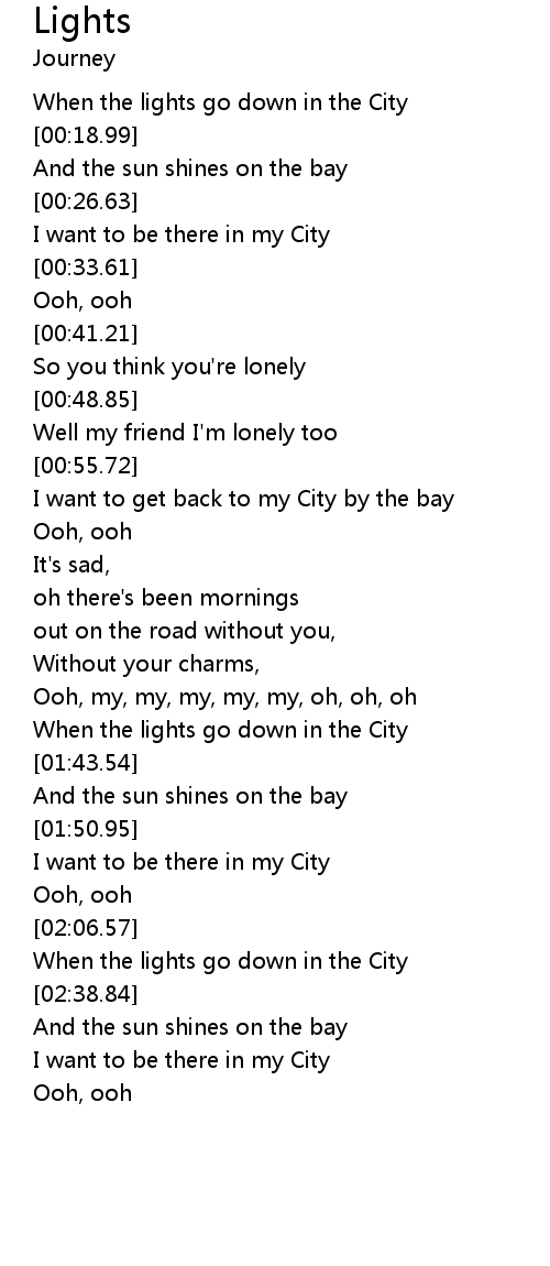 | [01:38.21] | When the lights go down in the City |