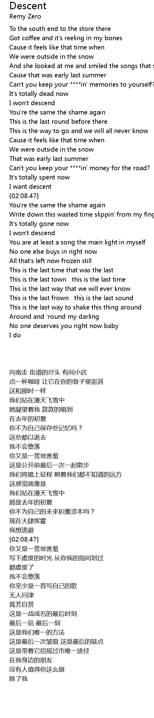 | [01:06.94] | Can't you keep your ****in' memories to yourself? |