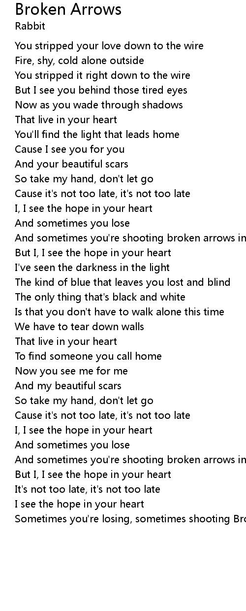 Sometimes you're losing, sometimes shooting Broken arrows in the dark |