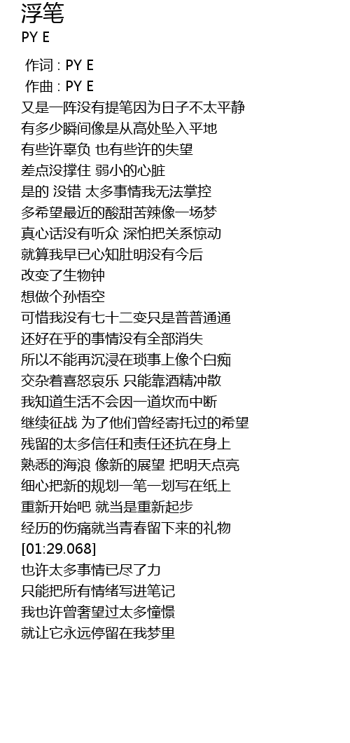 | [00:00.000] | 作词 : PY E |